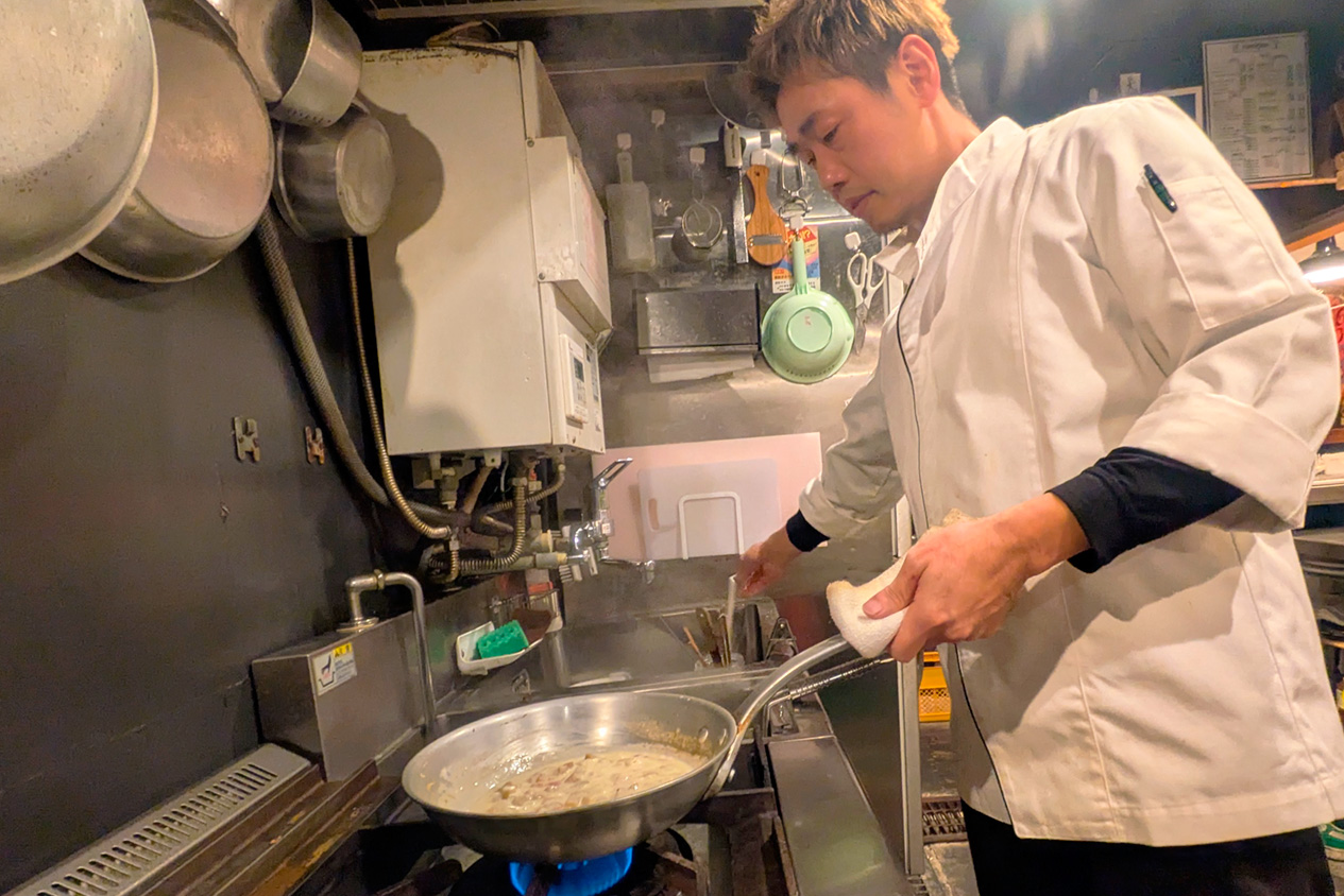 ひとくちたべて違いがわかる、ピザを始め、パスタ、前菜などもお酒にピッタリ!シェフが腕をふるいます。