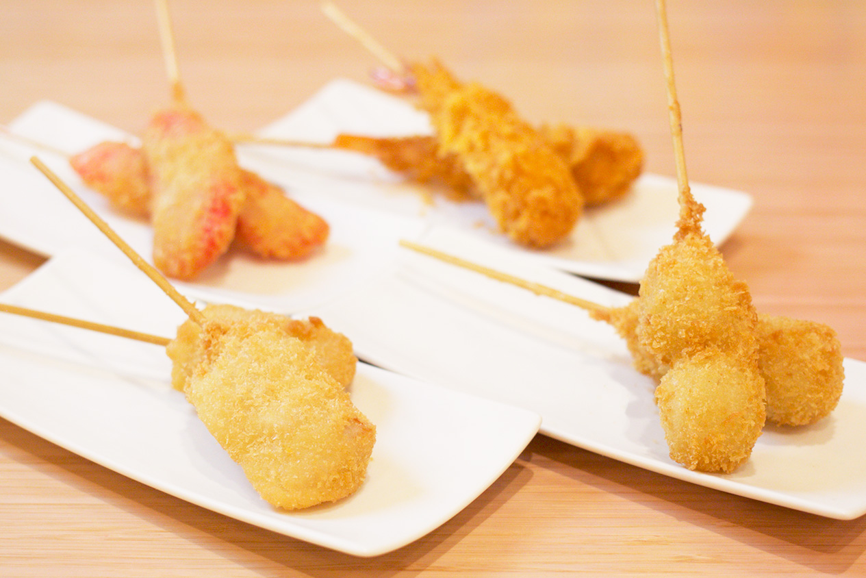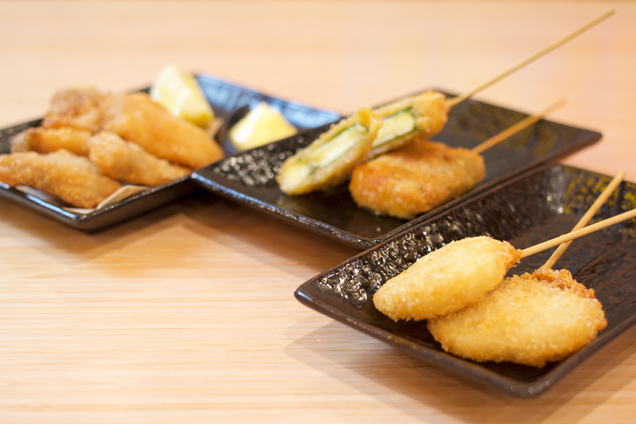 たこ焼きは関西のたこ焼きに忠実な定番なものから、明太チーズなどの変わり種も用意してあります。大阪名物串揚げもメニュー豊富!